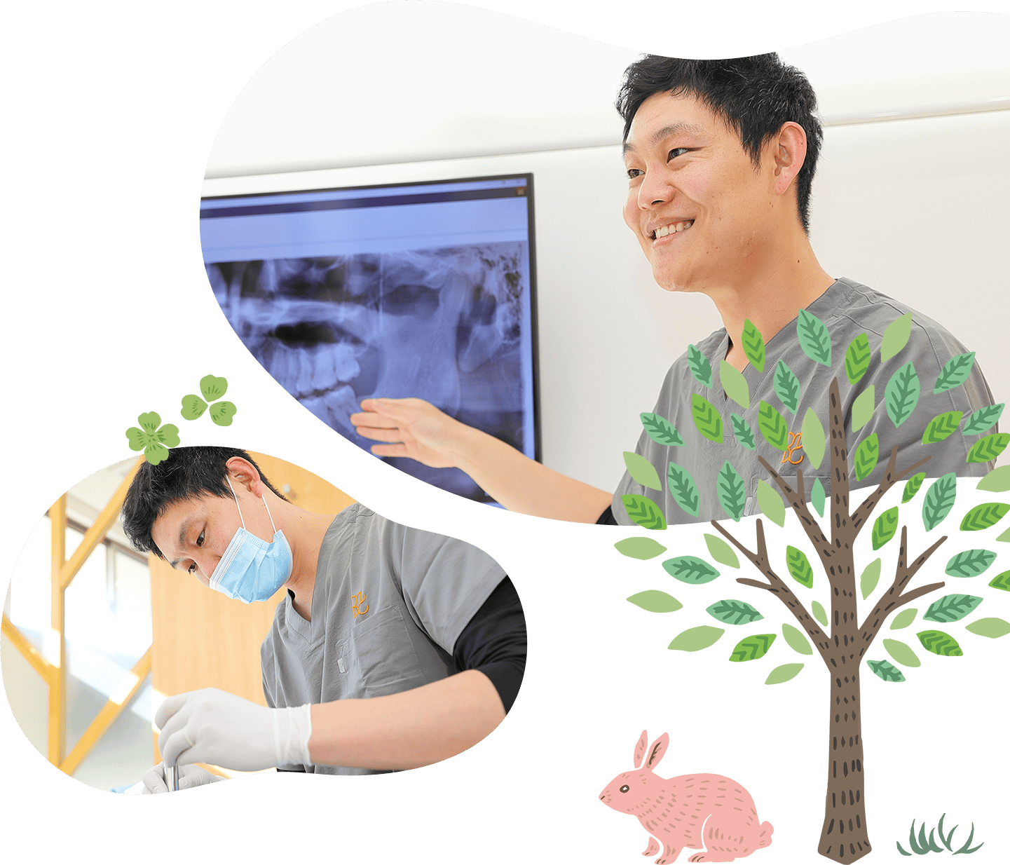 当院には、日本矯正歯科学会認定医など、矯正に関する専門資格を持つ経験豊富な歯科医師だけでなく、一般歯科をはじめとしたその他の歯科治療にも精通した歯科医師が在籍しています。矯正治療中にむし歯や歯周病治療が必要な際は、予防・メンテナンスと併せて当院で一貫して対応可能です。歯並びだけでなく、お口全体の将来を見据えたトータルな治療計画をご提案しますので、お気軽にご相談ください。