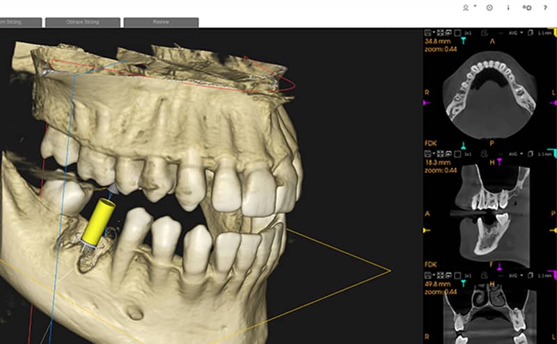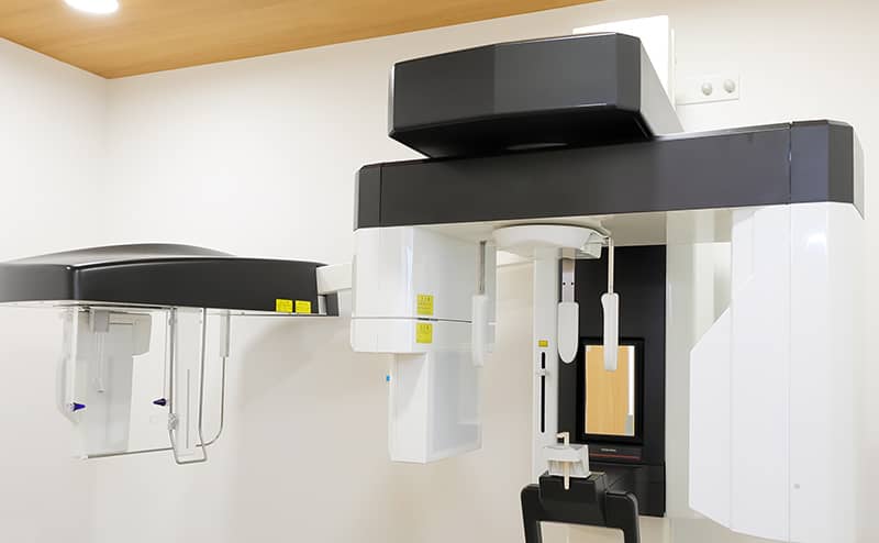 通常のレントゲン撮影ではわからない歯や顎の立体的な構造、骨の厚み、歯根の位置、歯の傾きなどを立体的に撮影します。お口の状態を詳しく把握できるため、正確な診断が可能です。医科用CTに比べて被ばく量が少なく、撮影時間が短いのも特徴です。